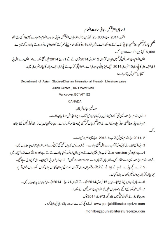 Copyright © 2014 Dhahan International Punjabi Literature Prize, All rights reserved.