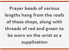supplication. The shopkeepers wear green or white prayer