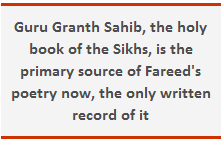 the Granth Sahib, the Sikhs regard Fareed's poetry as