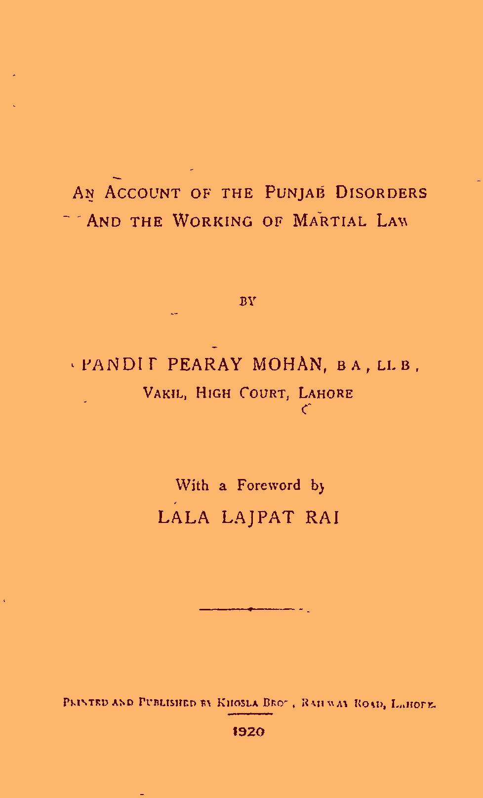 An Account Of The Punjab Disorders