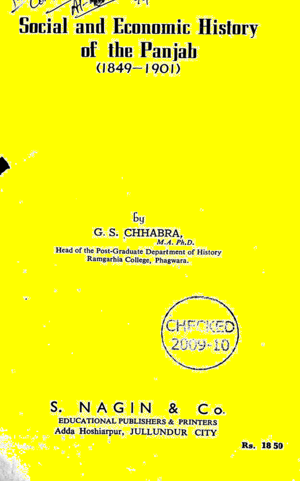 Social And Economic History Of The Panjab 1849 To1901