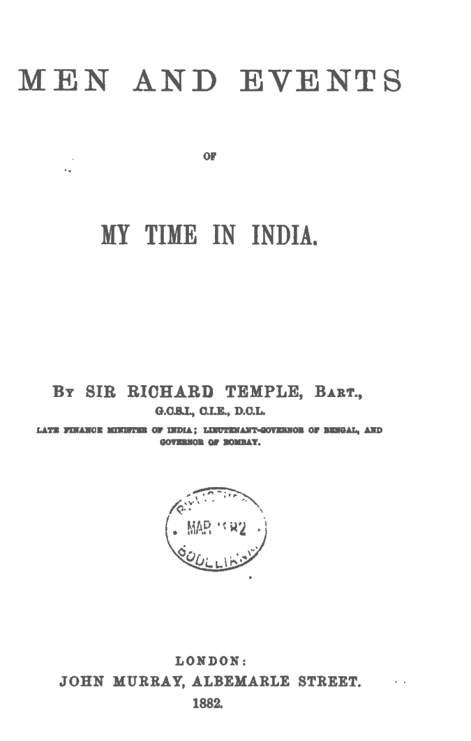 Men and Events of My Time in India